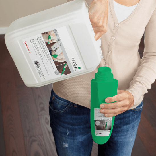 With this innovative cleaning system, the cleaner ‘Spray-Fix’ is a container (0.75L) ready-filled with a special cleaning dilution which can be easily sprayed directly onto the wooden floor with the touch of a button from the handle. Remove everyday dirt and grime exceptionally using the high quality Active-Fibre Mop, and thanks to natural oils, it prevents the floor from drying out.